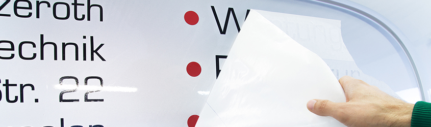 Bei der Fahrzeugbeklebung werden Ihr Logo, Schriftzüge und andere Designelemente aus einer hochwertigen Folie geplottet (geschnitten), entgittert und auf Ihr Fahrzeug geklebt (kaschiert).